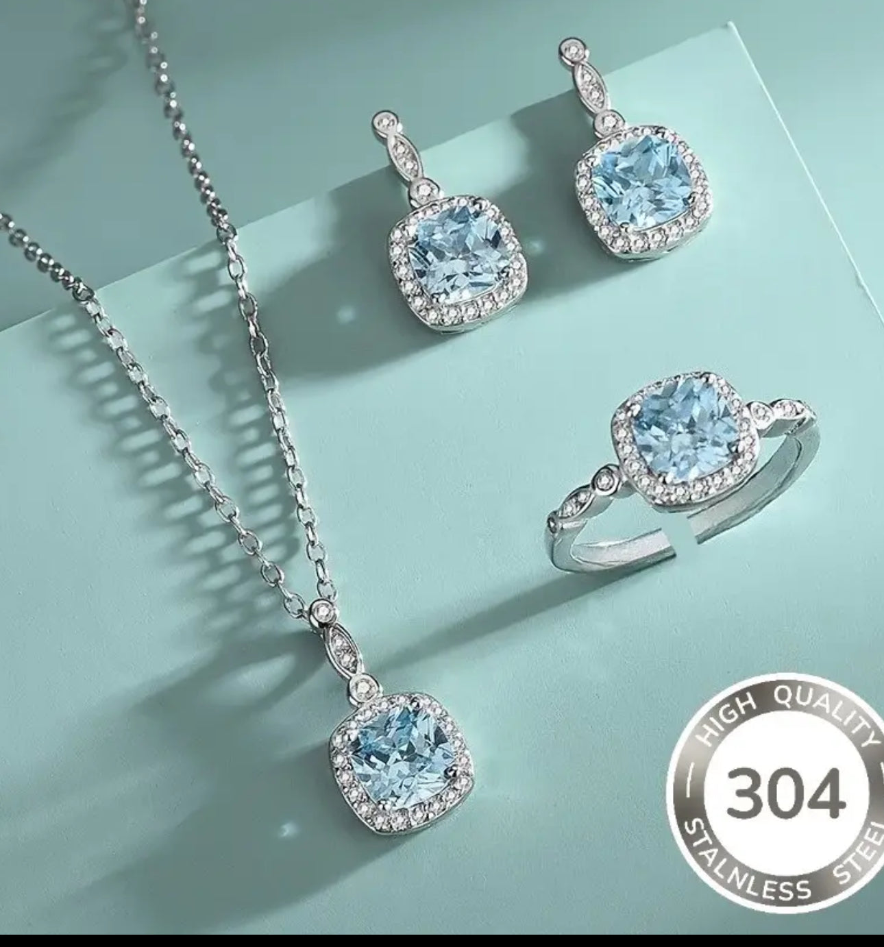 18K Gold Plated Stainless Steel Cubic Bear Necklace and Earrings Set